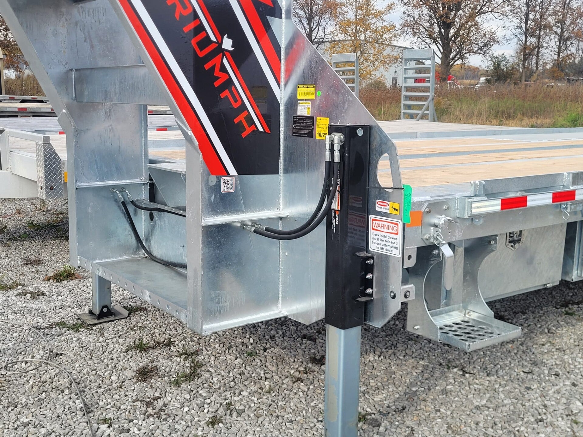 - Dual hydraulic cylinders exceeding trailer rating, providing smooth operation
